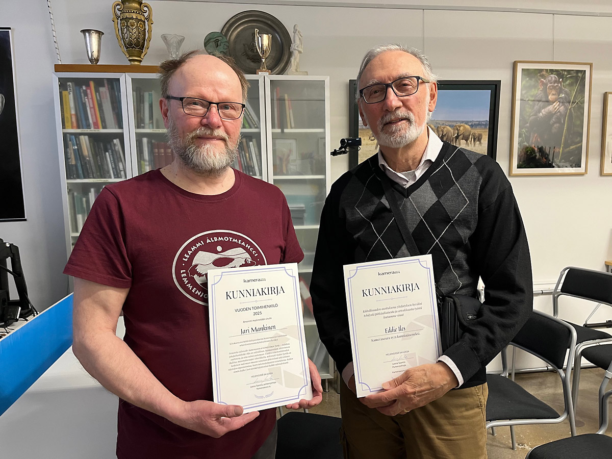 Kameraseura ry (Helsingin Kameraseura) on vuonna 1921 perustettu valokuvauksen harrastajien yhdistys, joka on sadassa vuodessa kasvanut lähes tuhannen harrastajan aktiiviseksi yhteisöksi. Tarjoamme jäsenillemme viikoittaisten tapaamisten ja luentojen lisäksi hyvät tilat niin studio- ja pimiötyöskentelyyn kuin kuvankäsittelyyn, kuvien tulostamiseen ja näyttelyiden järjestämiseen. Lue esittely.